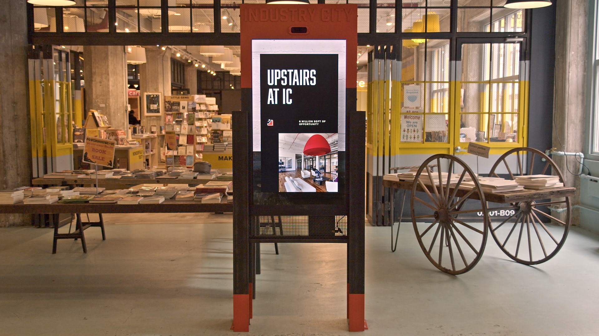 Rare Volume designed a modern digital signage system for Industry City. This redevelopment in Brooklyn, NY has transformed the historic waterfront region into a creative campus for the city’s burgeoning innovation economy of engineering, design, manufacturing, production, and food and beverage.
